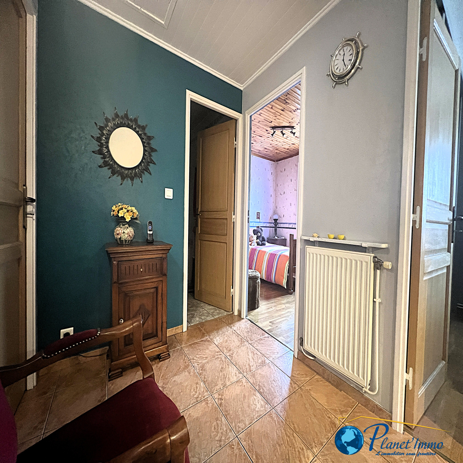 A l'étage, nous retrouvons quatre belles chambres idéales pour une grande famille , une salle d'eau avec wc.