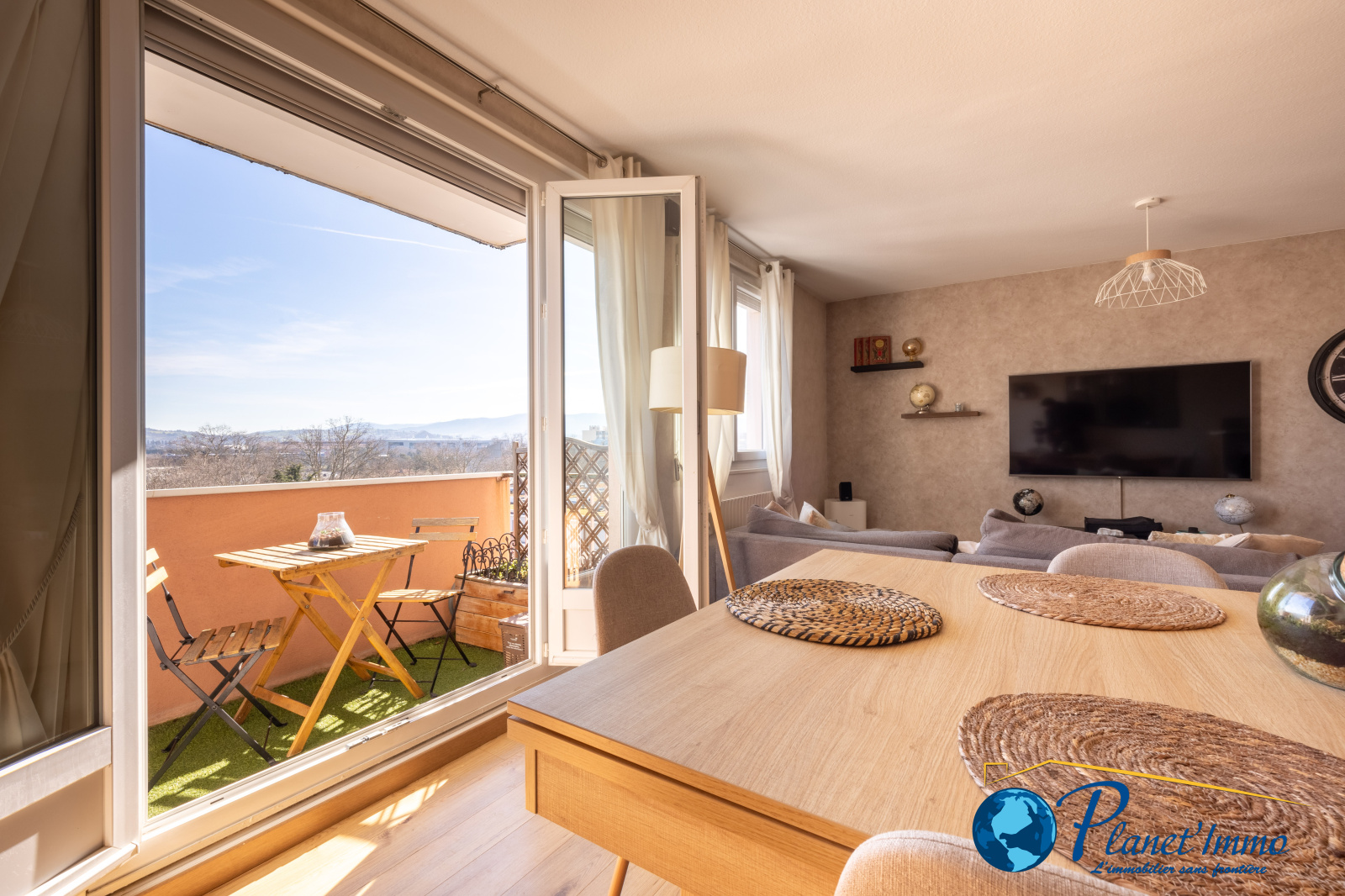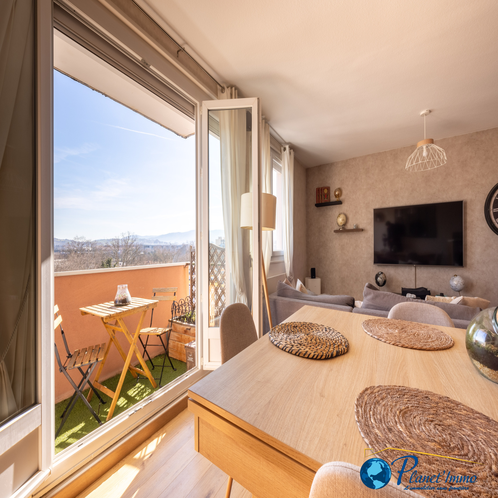 Dès l'entrée, vous découvrirez un espace chaleureux donnant sur un grand séjour/salle à manger avec accès à une terrasse profitable de 4 m² idéale pour un café sans vis à vis et avec une très belle vue !