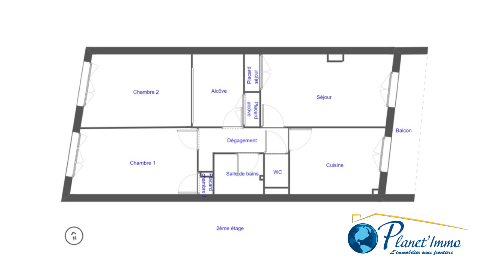 Ce bien se compose: D'une pièce de vie, une cuisine avec possibilité de l'ouvrir sur le séjour. Un balcon de 6,10m2. Deux grandes chambres. Une salle d'eau. WC séparé.