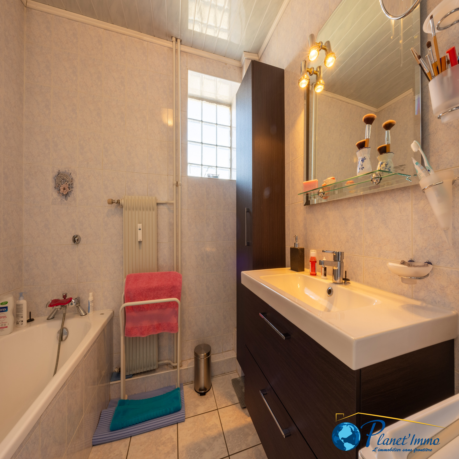 Cet appartement est exposé EST / Ouest , Double vitrage avec volets roulants. Chauffage et eau chaude collectif. Fibre optique.