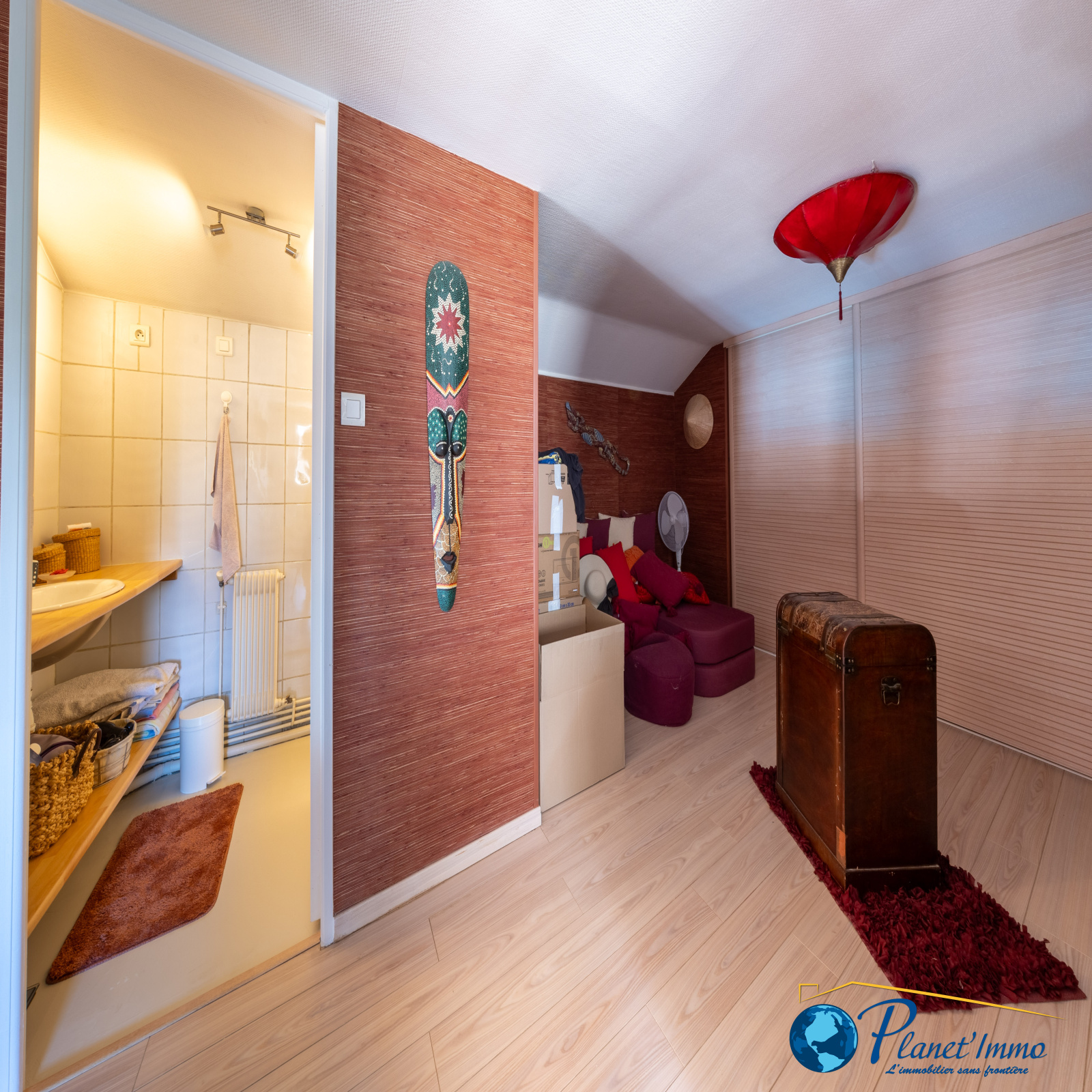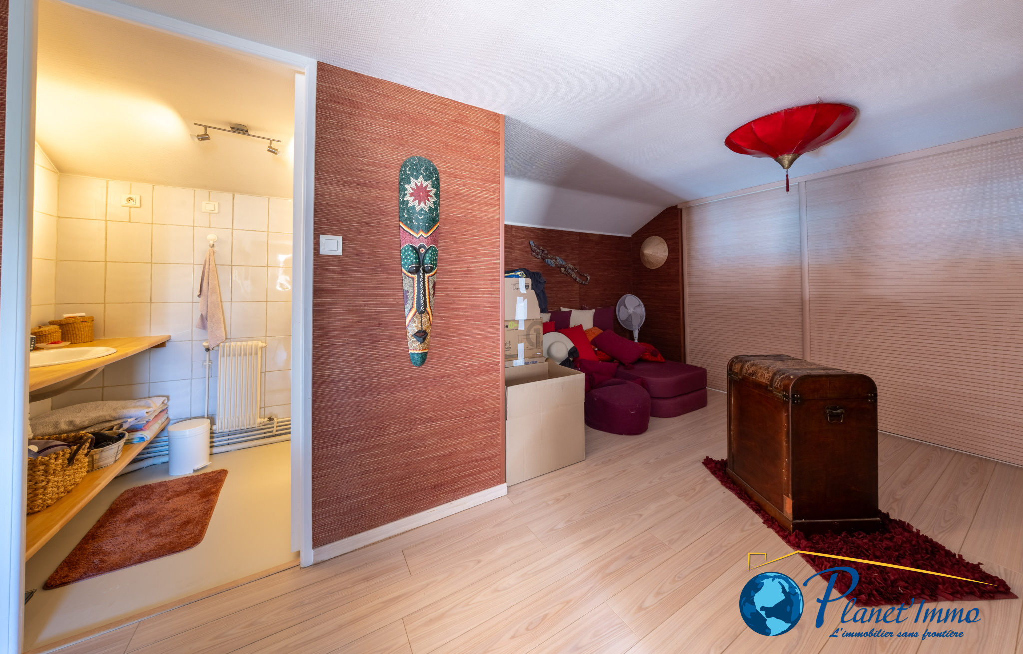 Une mezzanine avec salle de bain offre un espace supplémentaire modulable selon vos besoins