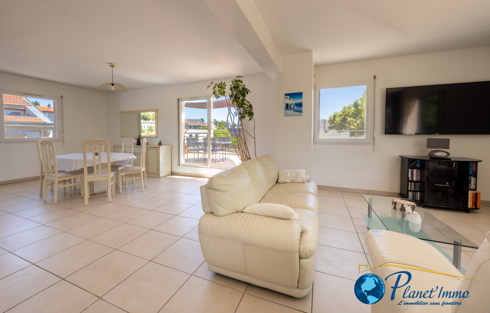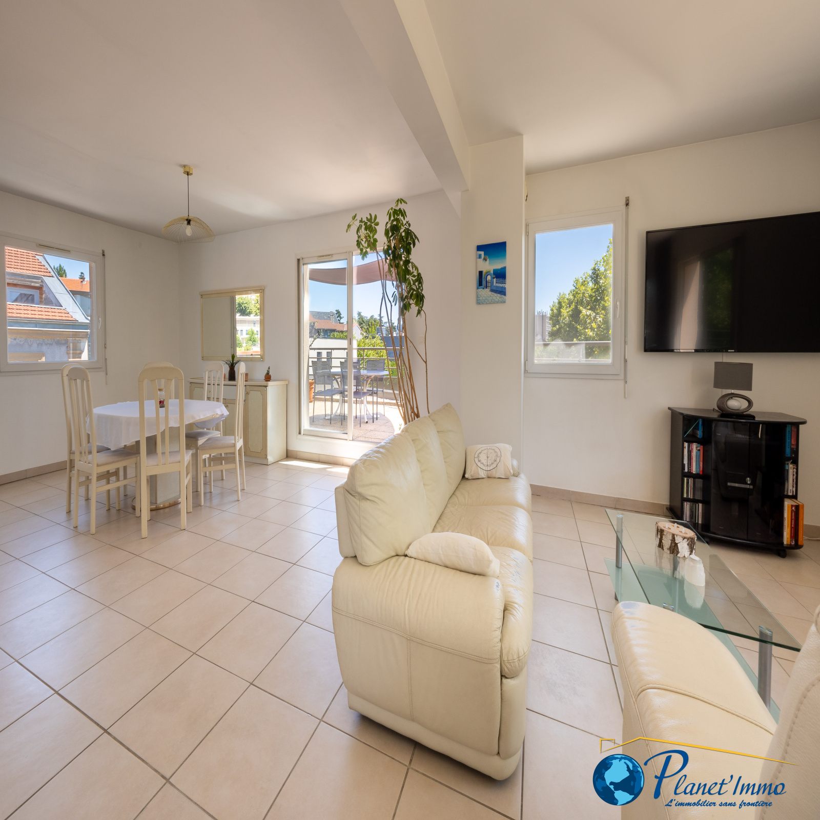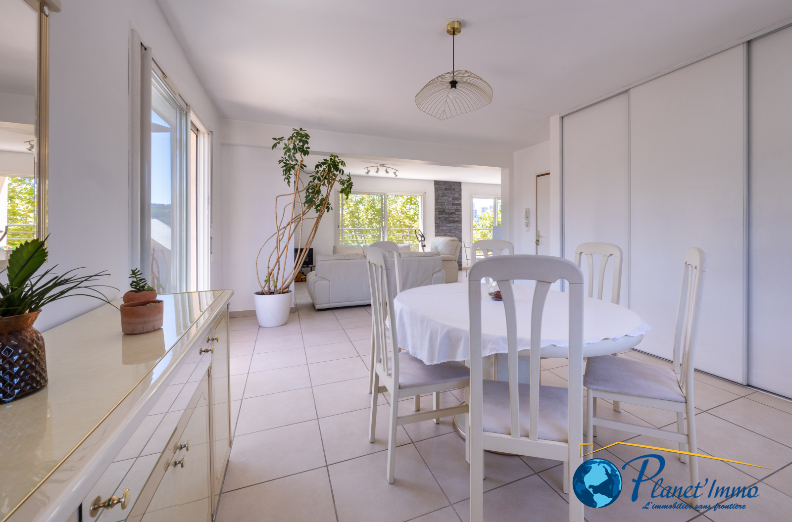 Il se compose : D’un grande pièce de vie de 57 m² avec séjour, salle à manger et cuisine ouverte entièrement équipée.