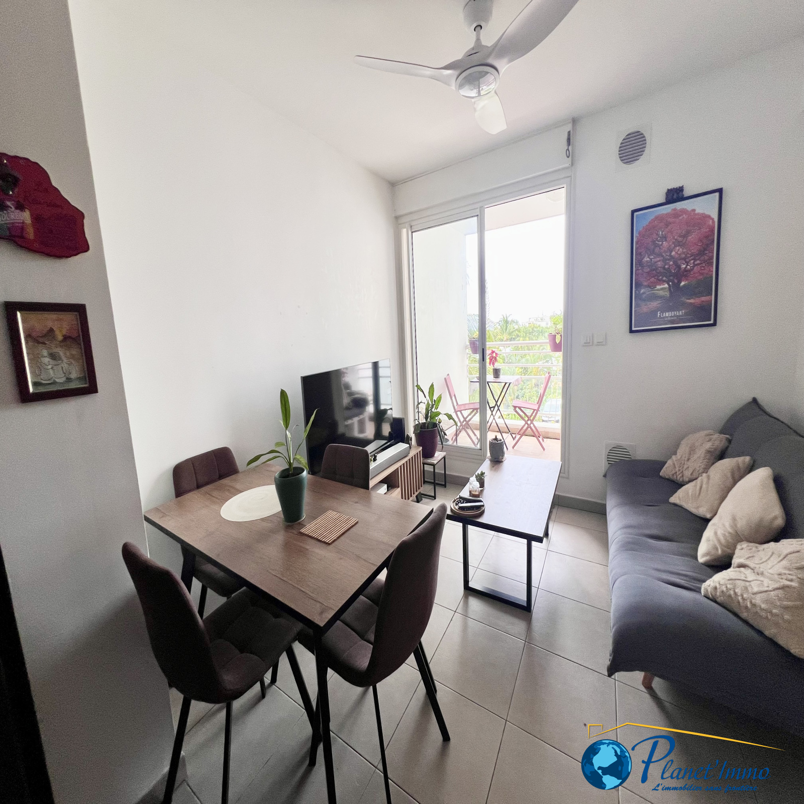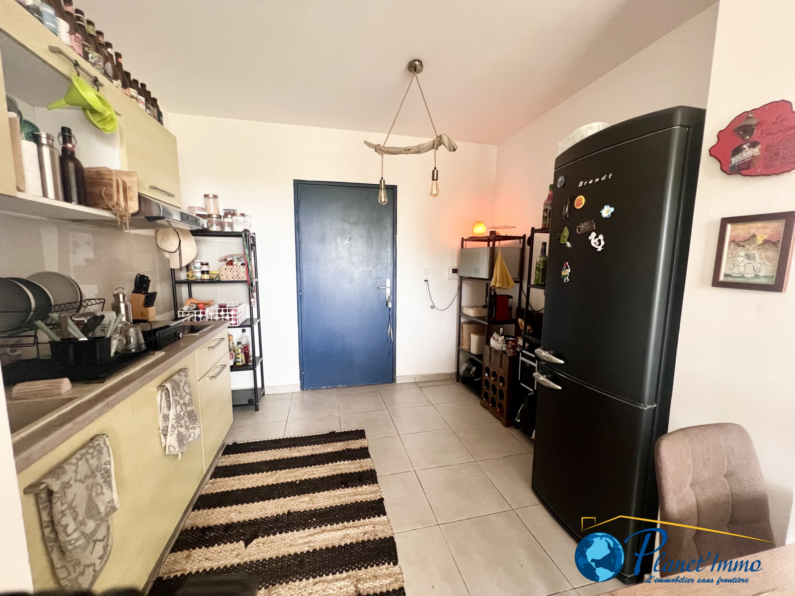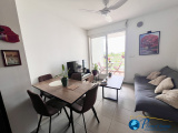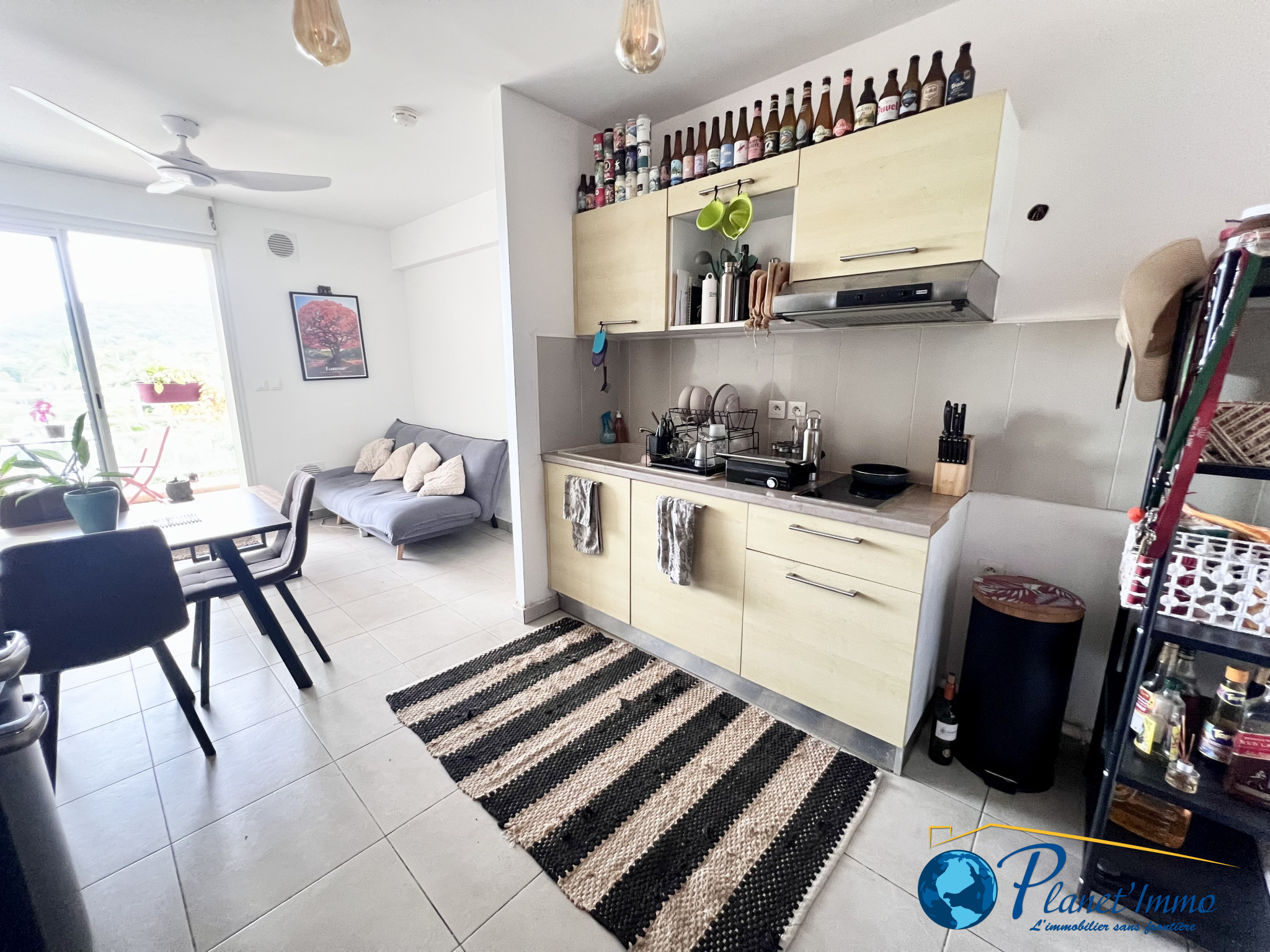 L’appartement se compose d’une cuisine ouverte sur le séjour, créant un espace de vie convivial et lumineux. La pièce principale s’ouvre sur une agréable varangue, idéale pour profiter de l’extérieur en toute tranquillité.
